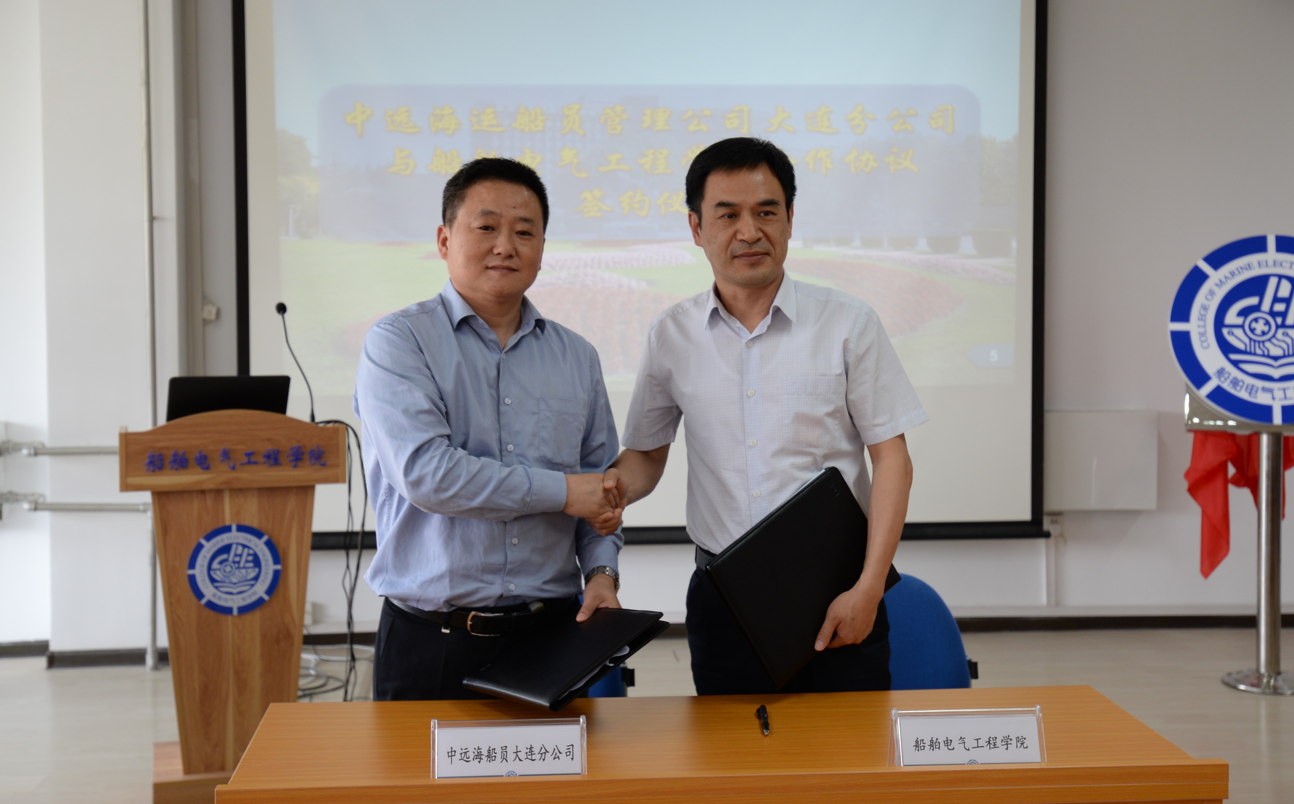 牛小兵与中远海运船员管理公司大连分公司签署合作协议。