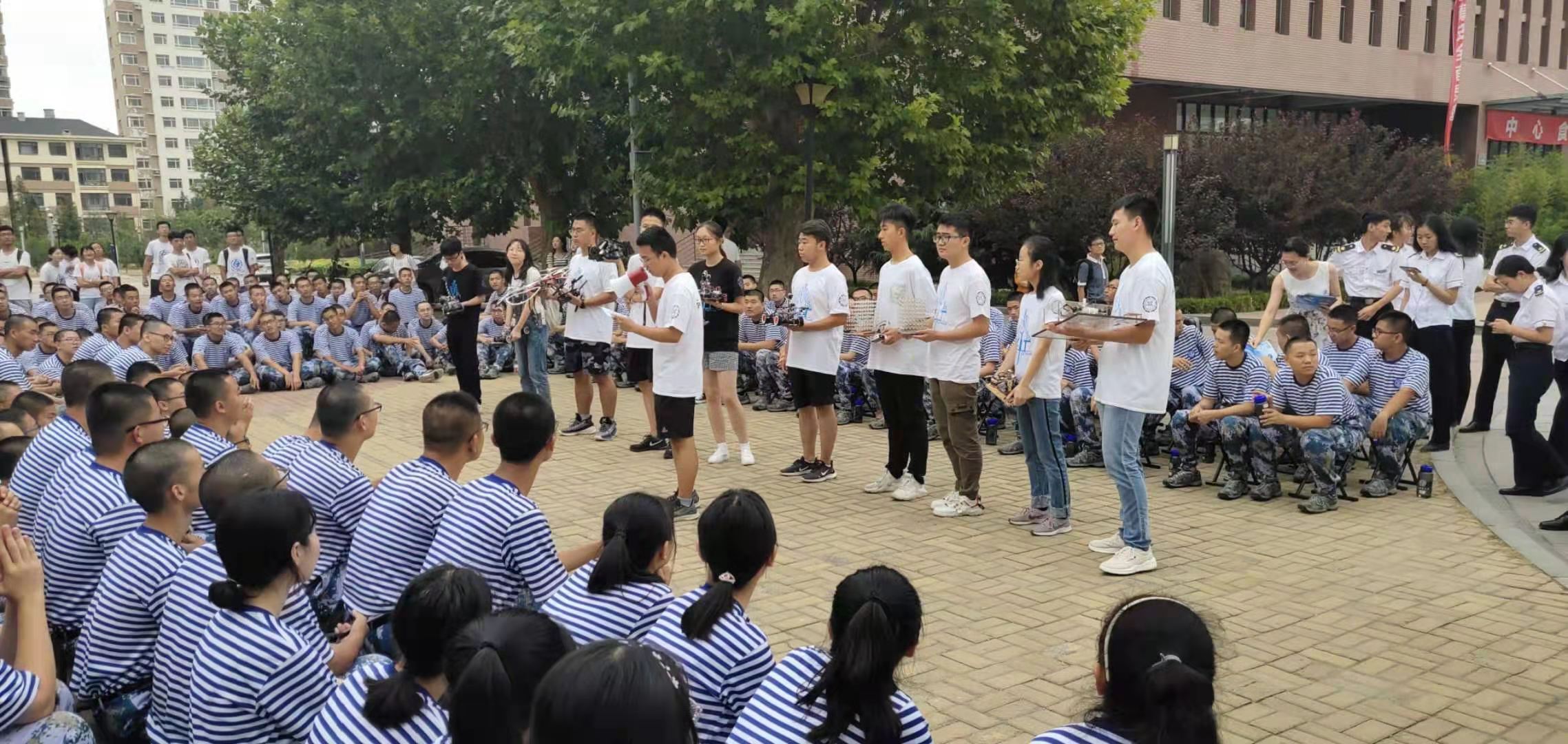 为了使新生们更加全面地了解大学的学习和生活,促进新老生的沟通与交流,9月4日,欧博abg官方网站在大学生活动中心前举办了优秀学生事迹报告会,学院指导员孔繁实、施涛以及2019级全体本科新生参加了报告会。
