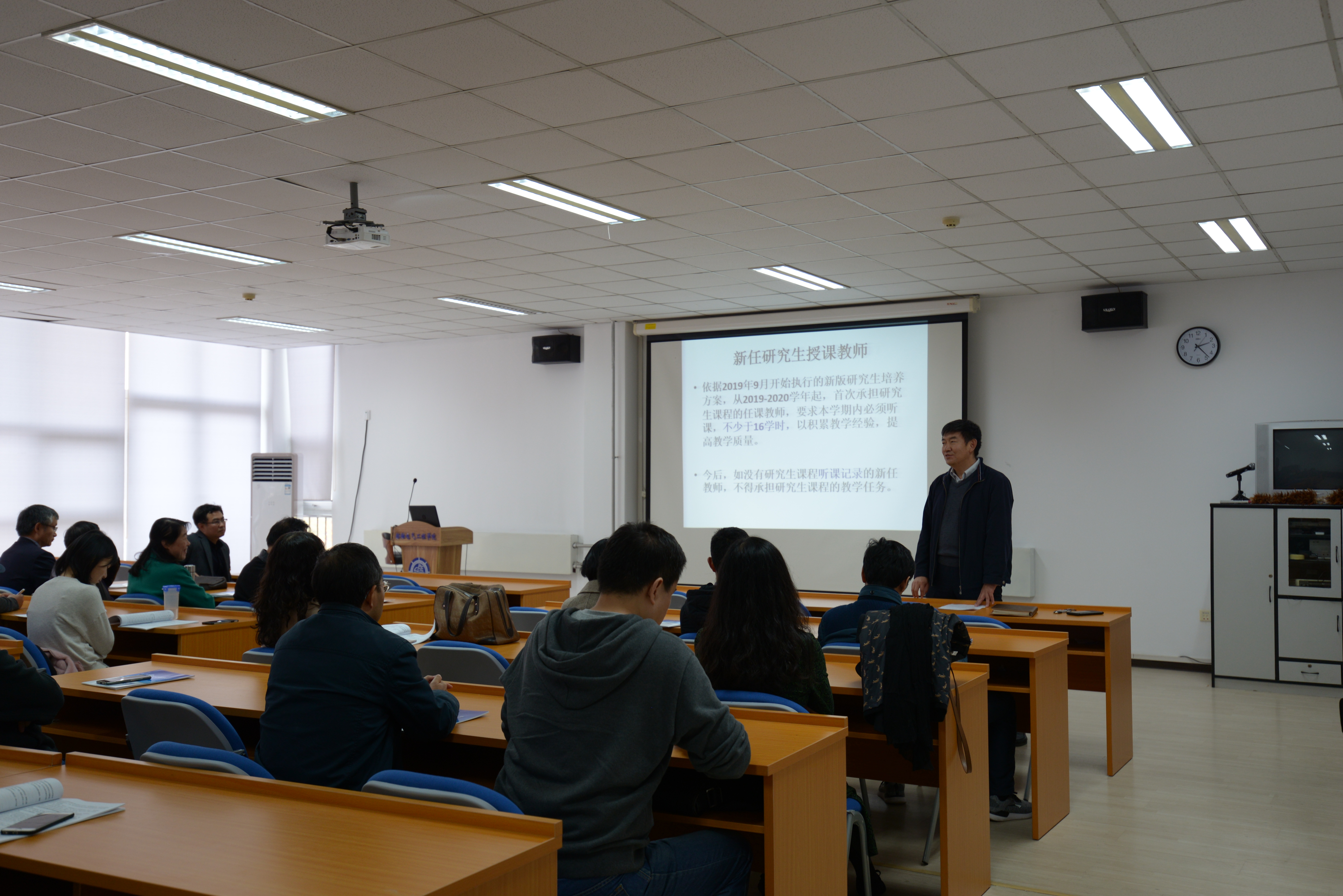 徐久军院长传达了教育部及学校关于研究生导师立德树人相关文件精神,他指出加强研究生导师队伍建设,全面落实研究生导师立德树人根本任务,是新形势下研究生教育管理工作的迫切需要;他围绕学校开展的一系列培训、研究生课程授课质量检查等方面工作内容,对学院研究生教育管理工作取得的成绩予以肯定,同时结合学院学科发展、学位点增设等多方面工作,提出了具体建议和要求。