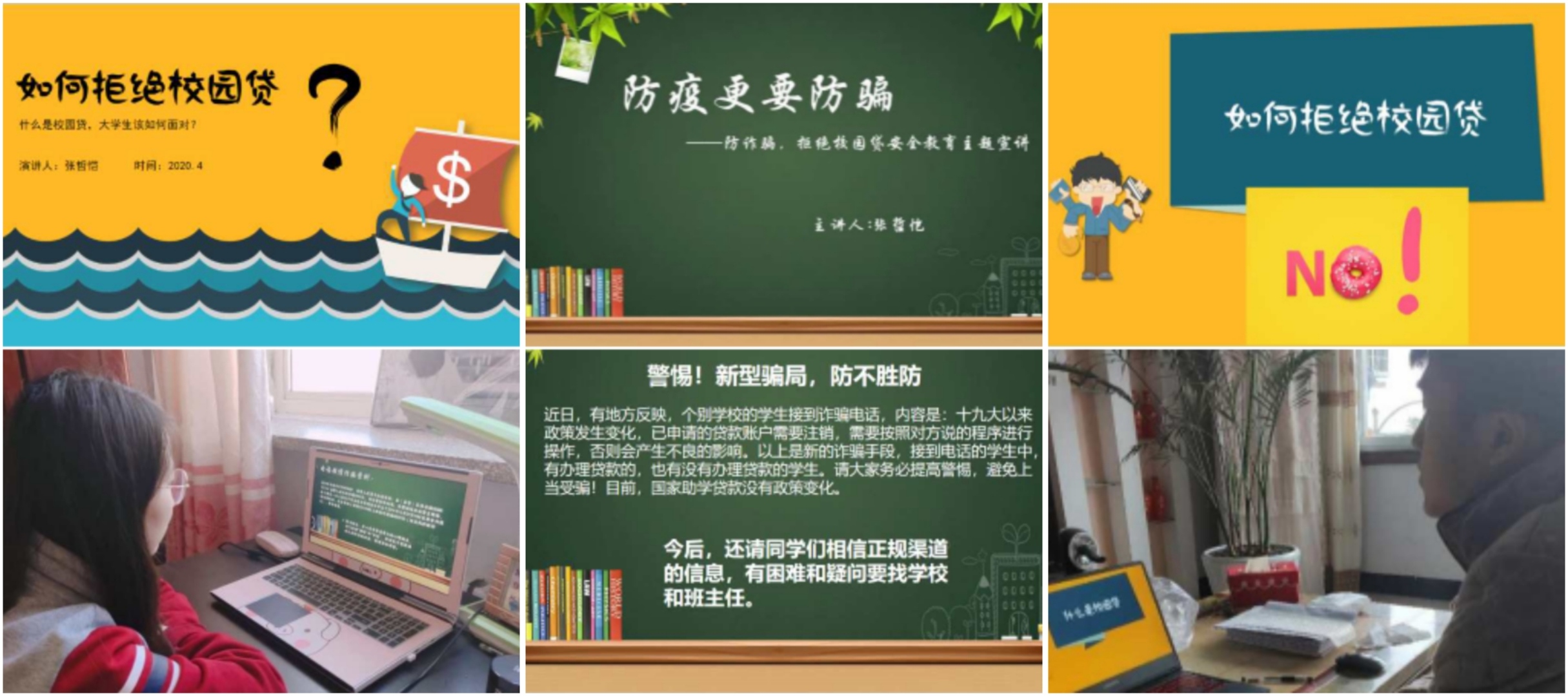 各中队充分利用网上授课、居家学习的契机,通过班级微信群、QQ群等各类线上宣传媒体,及时推送防电诈宣传知识,定期、不定期通报电信诈骗发案形式、最新诈骗手法、防范措施。自新冠肺炎疫情爆发以来,尤其是学校开展“停课不停学”活动以来,针对不法分子以假借疫情名义售卖口罩等医用防护物资实施诈骗、冒充教师收取费用、兼职刷单等为名,利用疫情巧设的各类骗局,反复强调广大学生务必要通过正规渠道购买医疗防护用品,广泛宣传常见电信网络诈骗犯罪的规律特点、典型案例、防范措施等。