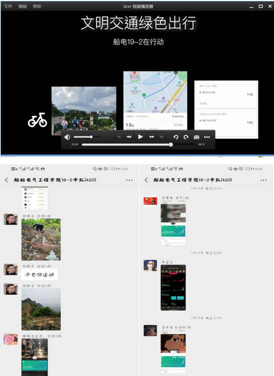 各中队召开相关主题班会,强化理论引领。每天晚上9:00-9:45,同学们在中队群开展打卡活动,分享自己的微信步数,健康出行照片等,还有同学自制视频记录自己的健康出行生活。