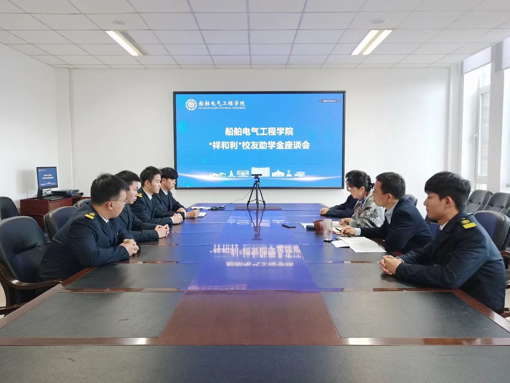 11月22日,欧博abg官方网站在船电楼310会议室召开“祥和利”校友助学金座谈会。学院党委书记徐德江、副院长于奕宁和船舶电子电气工程专业2019-2022级获得助学金的同学参加。