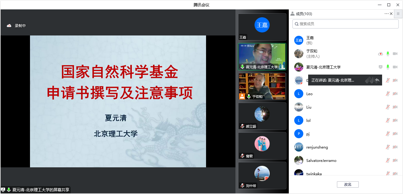 会议邀请北京理工大学自动化学院院长夏元清讲席教授作“国家自然科学基金申请书撰写及注意事项”的专题报告。夏教授结合自己多年申请国家自然科学基金项目的经历,系统全面讲述了基金申请书撰写过程中各部分的写作要点与方法、基金申报过程中心态的调整方法与注意事项及答辩过程中专家提问的重点与应对方法。