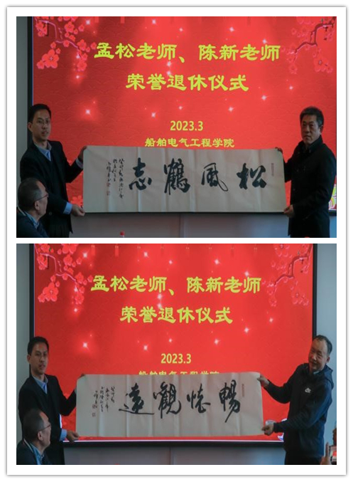 孟松和陈新两位教师表示,学院举办教师荣休仪式,让他们感到特别开心、温暖。他们深情回顾了几十年来在海大的工作经历,分享了在教书育人、科学研究等方面的深切感悟,他们为参与和见证学校学院发展感到荣幸,表达了对学校的深情和不舍,并祝愿学校和学院事业蒸蒸日上。