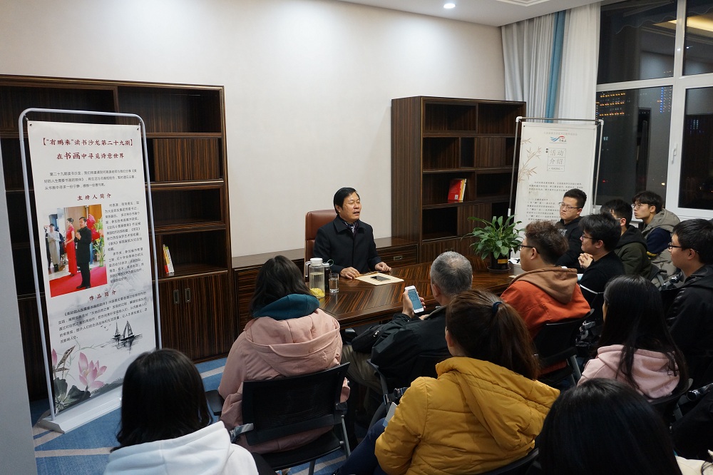 应学校团委邀请,“改革开放40年最具影响力画家”、大连铁实集团有限责任公司书记何恩源于3月6日携作品《美好的人生需要书画的陪伴》做客第二十九期“有鹏来”读书沙龙,在湖畔书屋与广大读书爱好者一同分享他对书画的独到见解。