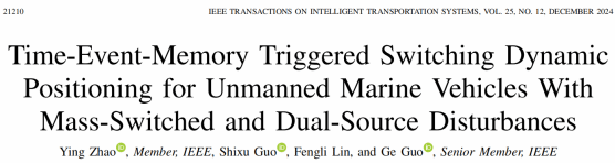 针对受多源海洋干扰影响的无人船动力定位问题,欧博abg官方网站赵颖副教授在《IEEE Transactions on Intelligent Transportation Systems》发表题为“Time-event-memory triggered switching dynamic positioning for unmanned marine vehicles with mass-switched and dual-source disturbances”的科技论文。该期刊为智能交通领域顶级期刊,最新影响因子7.9,现属于中科院1区Top期刊。