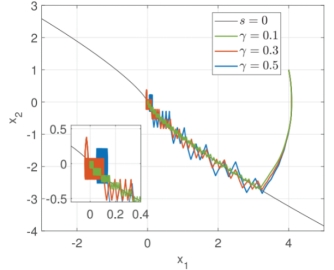 图1 相平面中不同 对应的系统轨迹 | 图2 控制输入信号 |