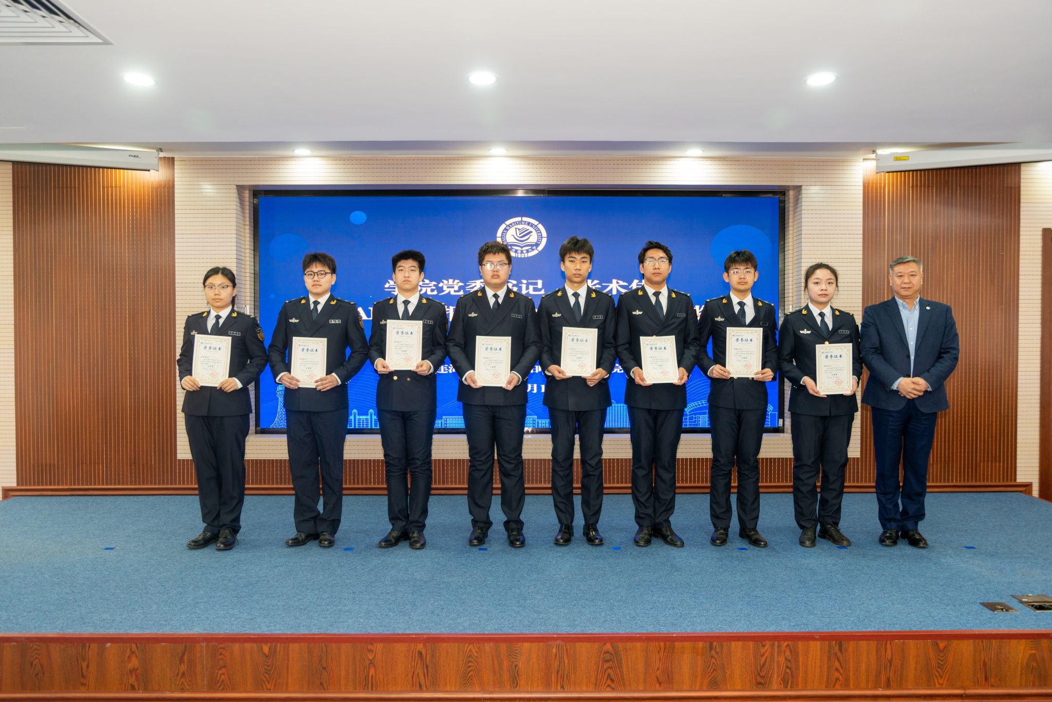 “全国道德模范”“感动中国年度人物”官东同志,党委学生工作部部长王义波,校团委书记慕涛,党委宣传部副部长谢梓帆,马克思主义学院党委书记邵芳强,欧博abg官方网站党委书记张术佳、党委副书记王超、学院指导员,电气工程及其自动化2024-4班全体同学及其他班级学生代表共同参加班会。班会由船电2024-2中队指导员黄碧珍主持。